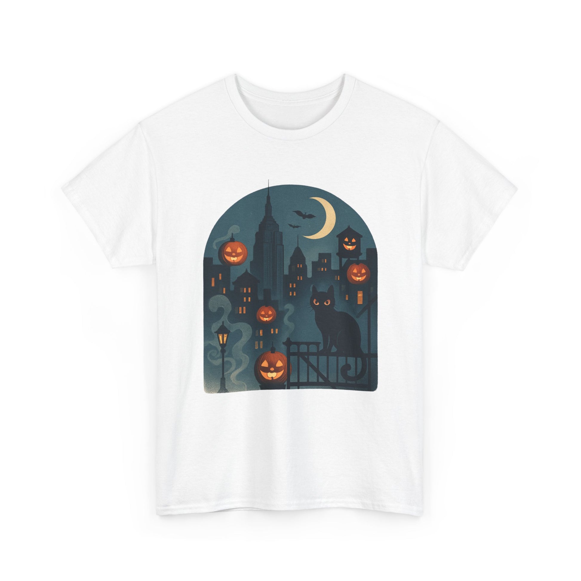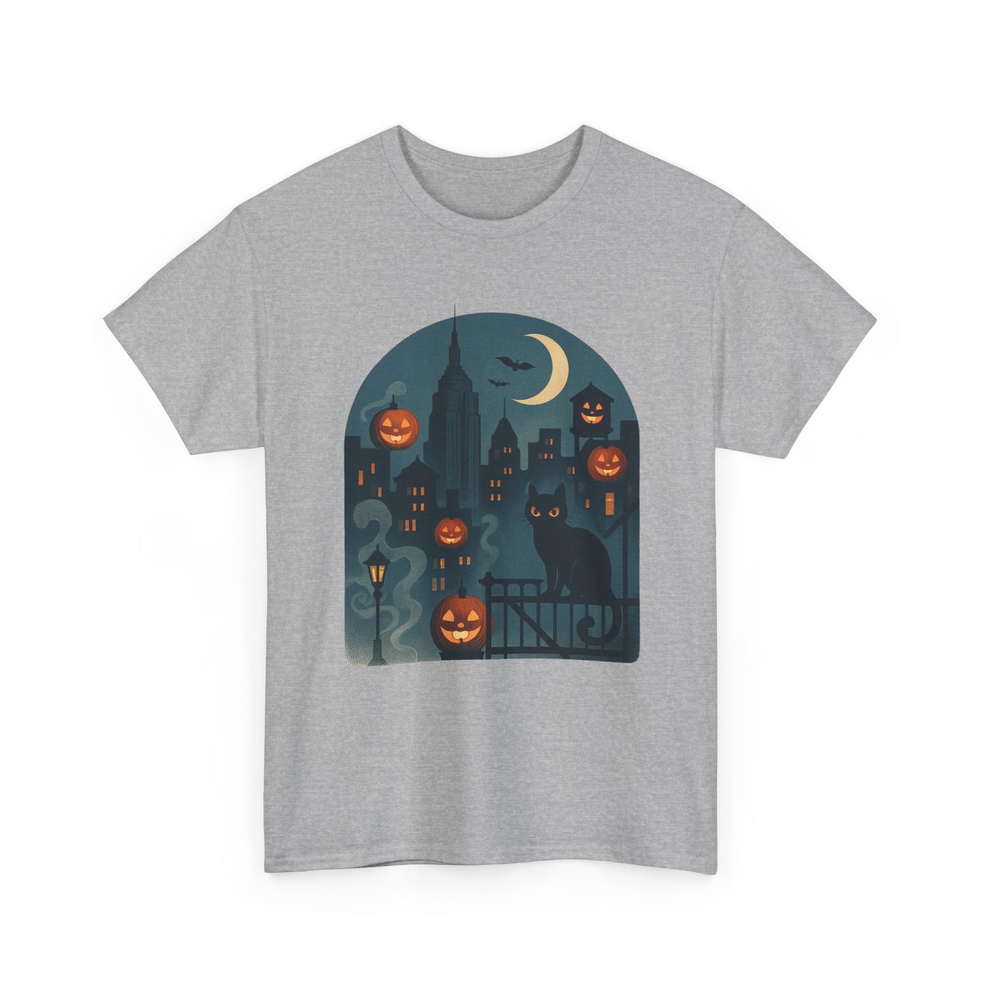 Spooky Halloween Cat Tee, Unisex Heavy Cotton Tee for Fall, Halloween Party Shirt, Pumpkin Graphic Tee, Casual Autumn Wear